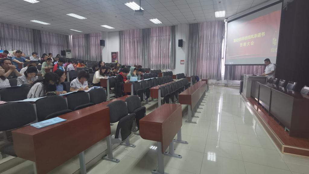 为深入学习贯彻习近平总书记关于教育的重要论述和全国教育大会精神,认真贯彻落实《新时代高校教师职业行为十项准则》,进一步加强基础部师德师风建设,努力打造政治素质过硬、业务能力精湛、育人水平高超的高素质教师队伍,2021年5月12日下午,基础部全体教师在电气工程学院阶梯教室进行了师德师风专题教育大会,并全体签署了《师德师风承诺书》。