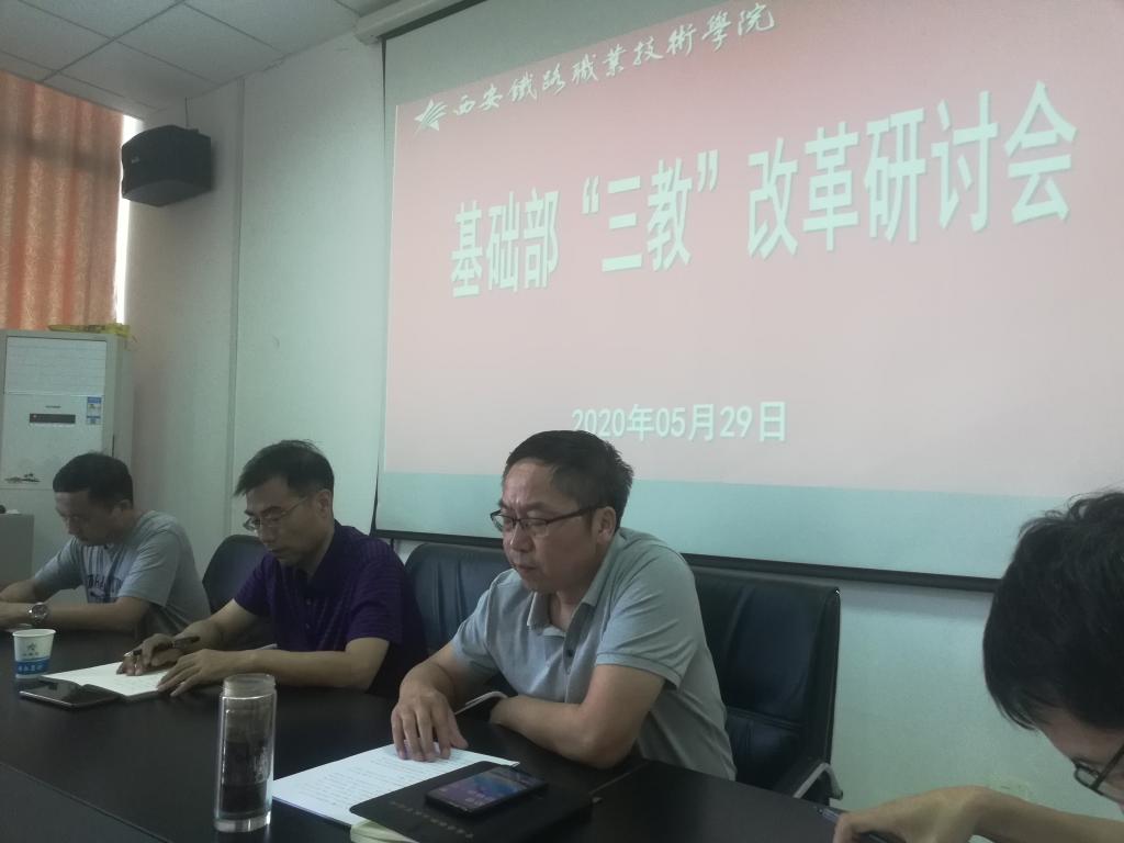 5月29日上午,基础部召开“三教”改革研讨会,教研室主任,教学名师、学科带头人、骨干教师参加了会议,会议由基础部主任孙明魁同志主持,教务处处长滕勇莅临现场指导。