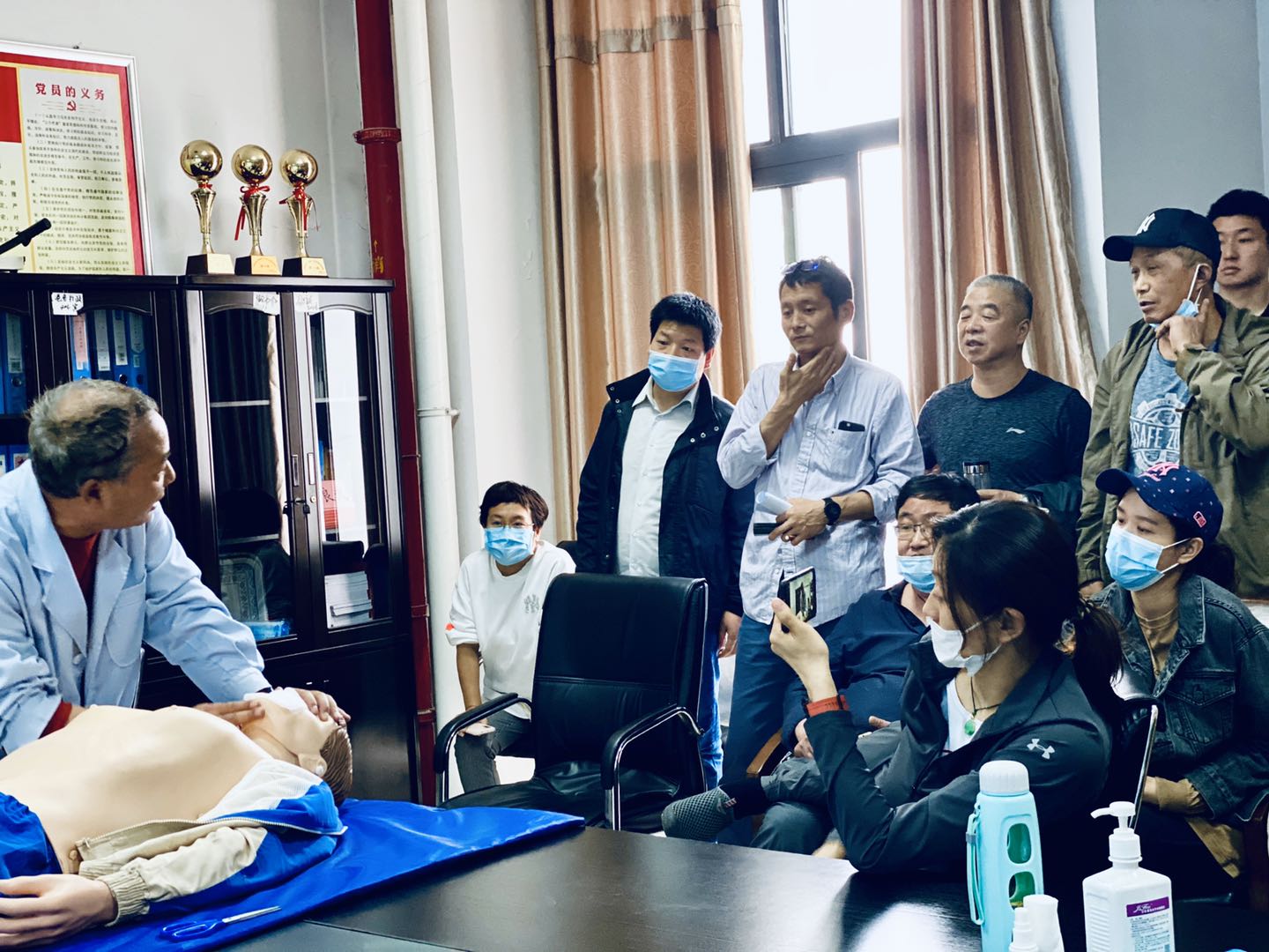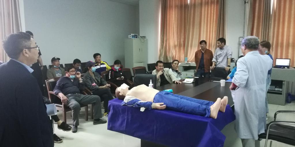 在西安市红十字会吴大夫和张护士长的耐心讲解与示范下,我院体育教师们认真聆听了心肺复苏和手动除颤的操作要点及注意事项,并在吴大夫的指导下轮番体验了心肺复苏和手动除颤的操作。