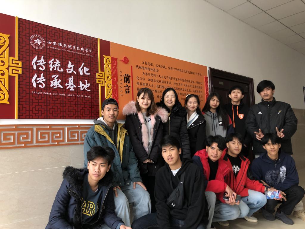 为响应国家"一带一路"倡议,推动中国与泰国的友好合作,促进泰国留学生学习领悟中国文化,提升城轨供电专业技术能力,基础部语文教研室胡蕊、潘馨培、王健、龙翔、王叙雅老师共同承担了城轨供电专业泰国留学生班的《中国艺术》课程的教学任务。经过三个多月的《中国艺术》教学活动,2020年元月2日,中国艺术课程开展了学习成果展示和文化体验活动,推动了师生互动交流,进一步强化了学习效果。