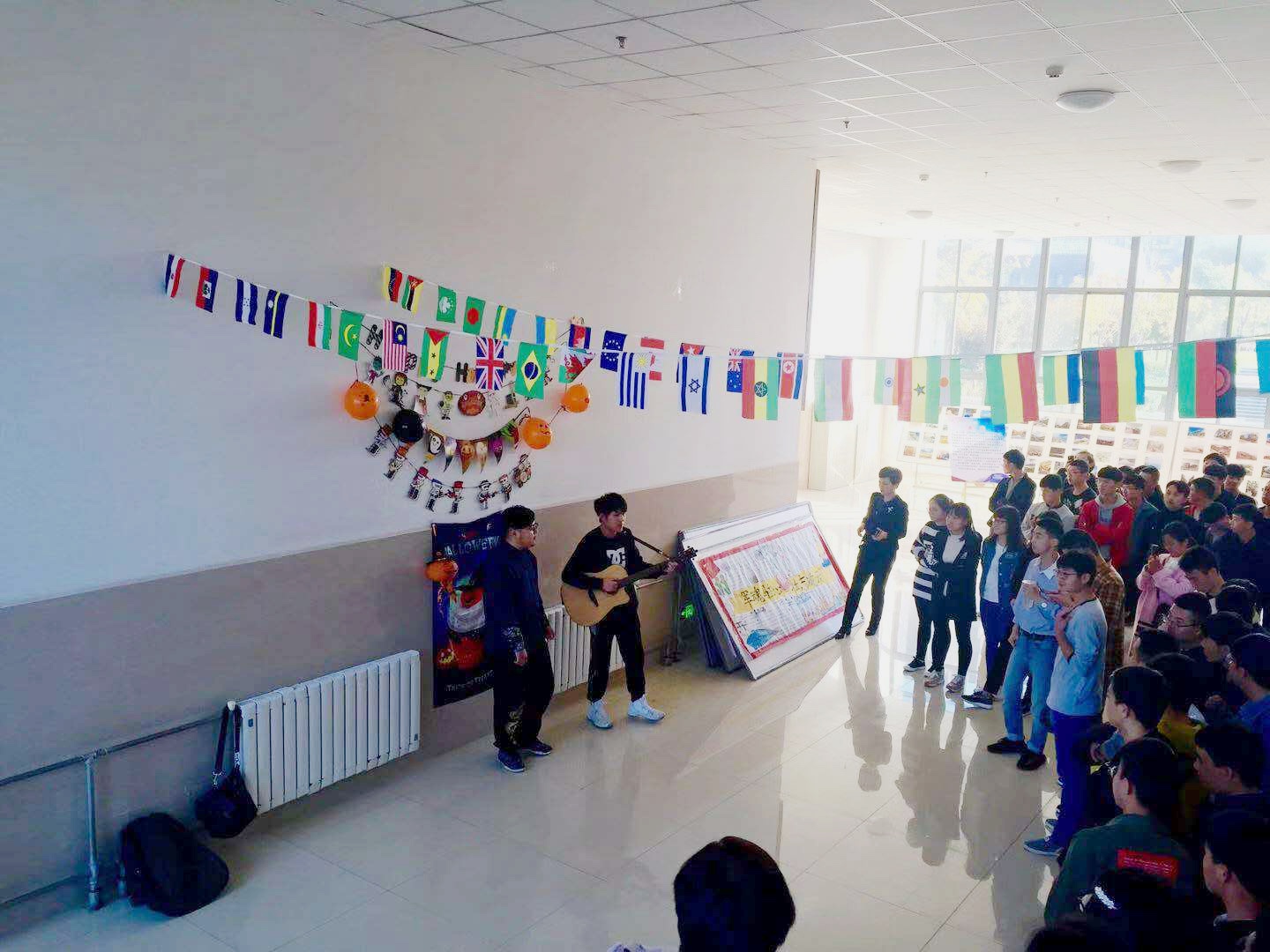 本次英语角活动由来自机电工程学院杨尚东同学和杨洋同学的一首开场曲《Baby》点燃了万圣节的火热激情。之后,大家自由组合围绕活动主题进行交流,同学们兴致勃勃,气氛活跃。活动期间,英语教研室教师还亲手为同学们分发了糖果,让大家沉浸在节日的喜悦和欢乐之中。