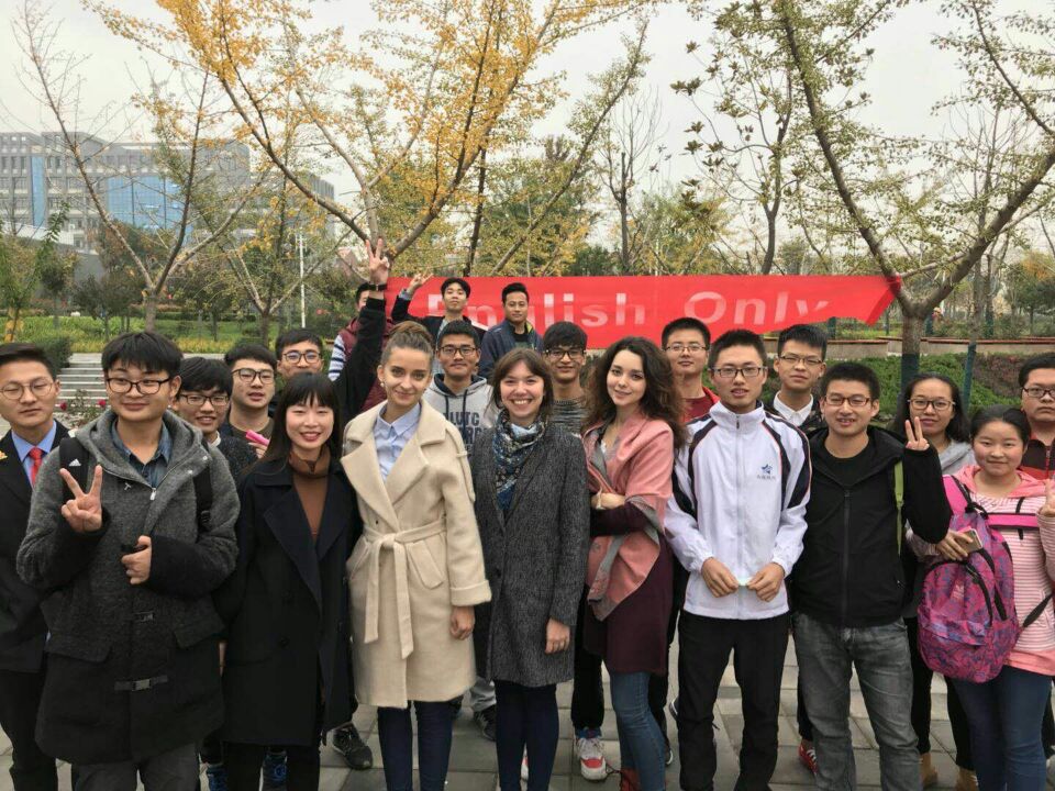 2017年11月1日下午,西安铁路职业技术学院首次“英语角(English Corner)”在银杏树广场成功举办。来自港务校区四个系部的学生及英语教研室全体老师参加了此次活动。此外,还邀请了国际交通学院三位俄籍外教作为特别来宾参与本次活动。