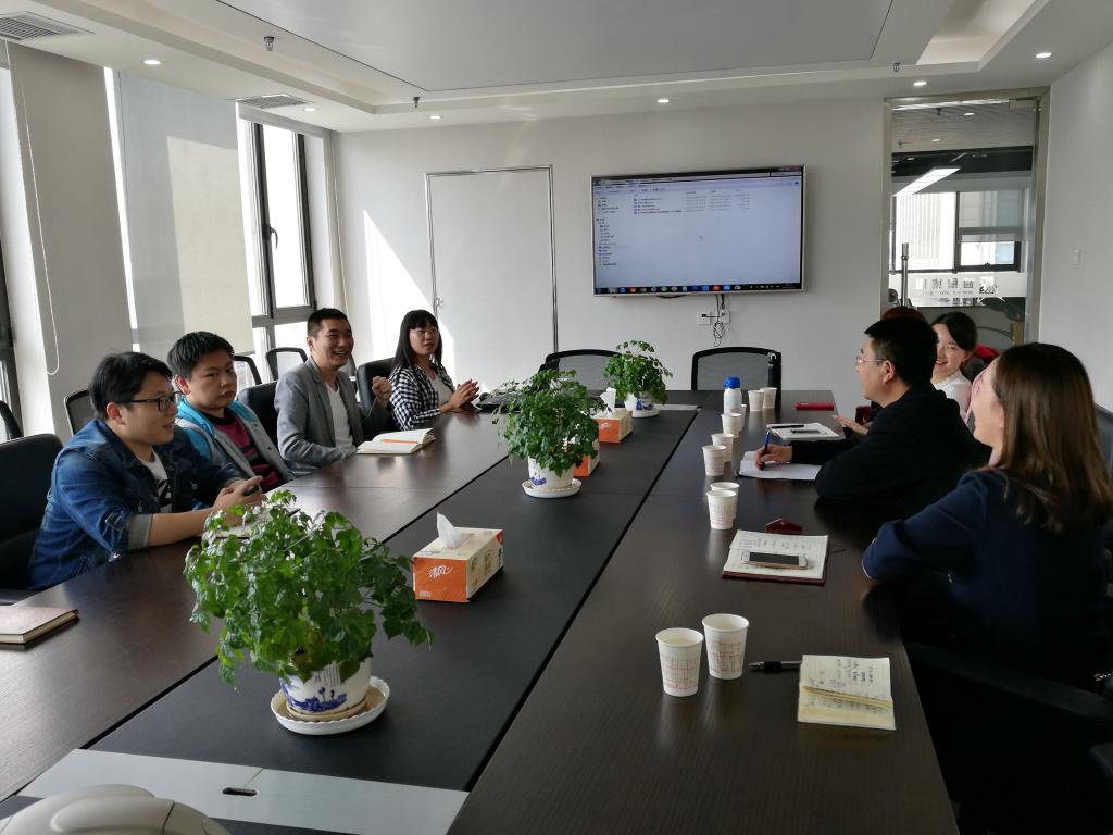 课程团队负责人胡蕊老师先介绍了团队成员及本次调研的目的和想法。超星集团慕课制作团队负责人韩老师代表西安分公司对基础部教学团队的到来表示欢迎,并向基础部一行介绍了慕课制作流程和制作方案,随后编辑策划及后期制作和编导等技术人员又从专业的角度进行了专门讲解。