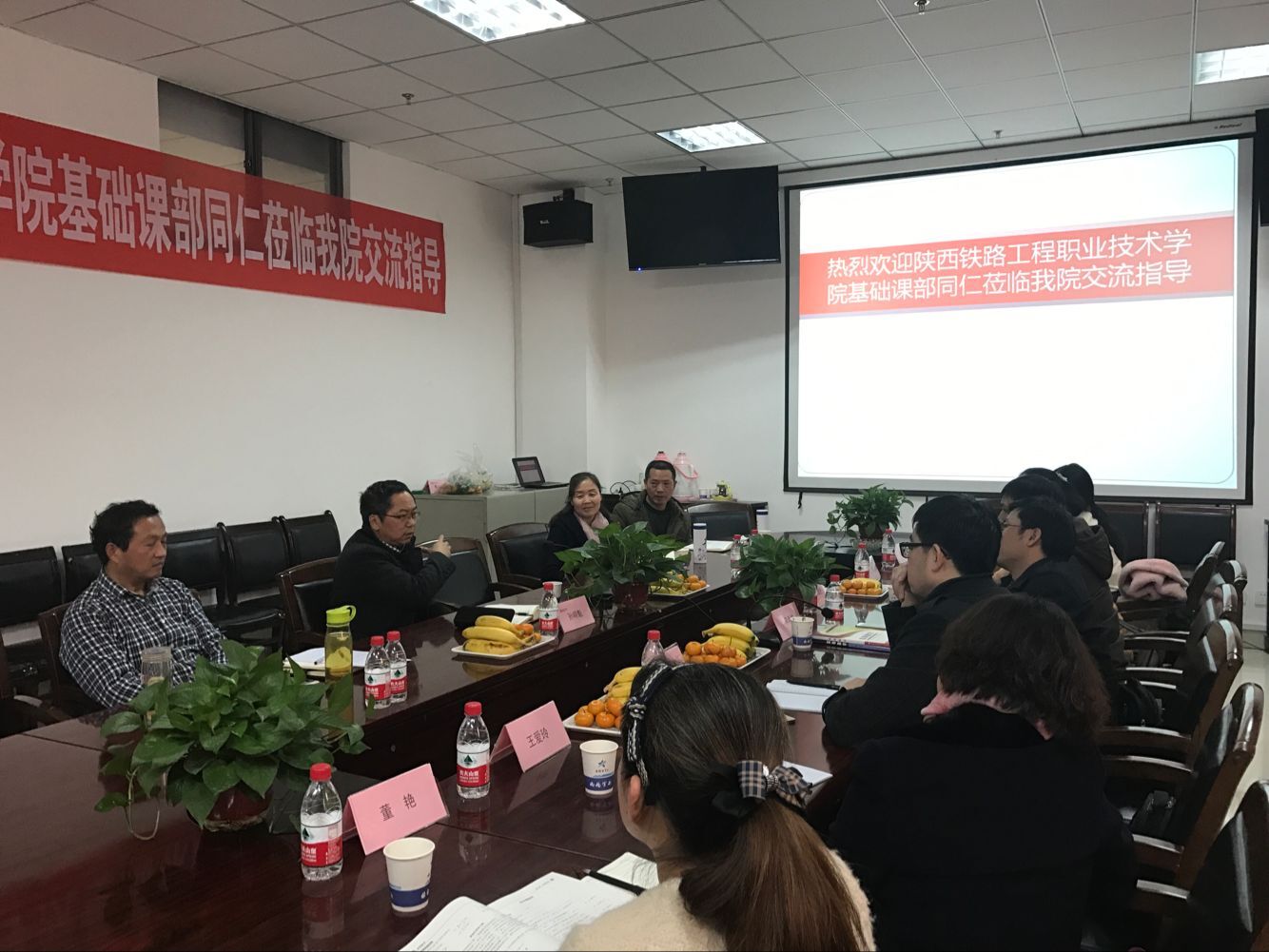 12月2日上午,陕西铁路工程职业技术学院基础课部李兵方主任一行7人前来我院,就公共基础课教学与改革、数学建模及英语口语大赛的开展进行深入交流。我院基础部副主任孙明魁以及各教研室主任和相关老师参加座谈。